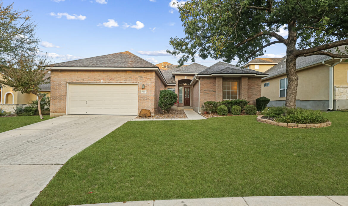 Spacious and stylish! This beautifully maintained one-story home with a bonus loft offers 4 bedrooms all downstairs, plus nearly 3,000 sq ft of well-planned living space. Open floorplan, soaring vaulted and coffered ceilings, and a gourmet island kitchen with granite counters and ceramic tile make this home shine. The oversized primary suite includes a cozy sitting area, and the laundry room with built-in cabinetry adds convenience and storage. Step outside to a covered patio and manicured landscaping-perfect for relaxing or entertaining. Located in a gated community with pool and clubhouse, directly across from top-rated Aue Elementary in Northside ISD. Quick access to IH-10, La Cantera, The Rim, Valero, USAA, and UTSA.